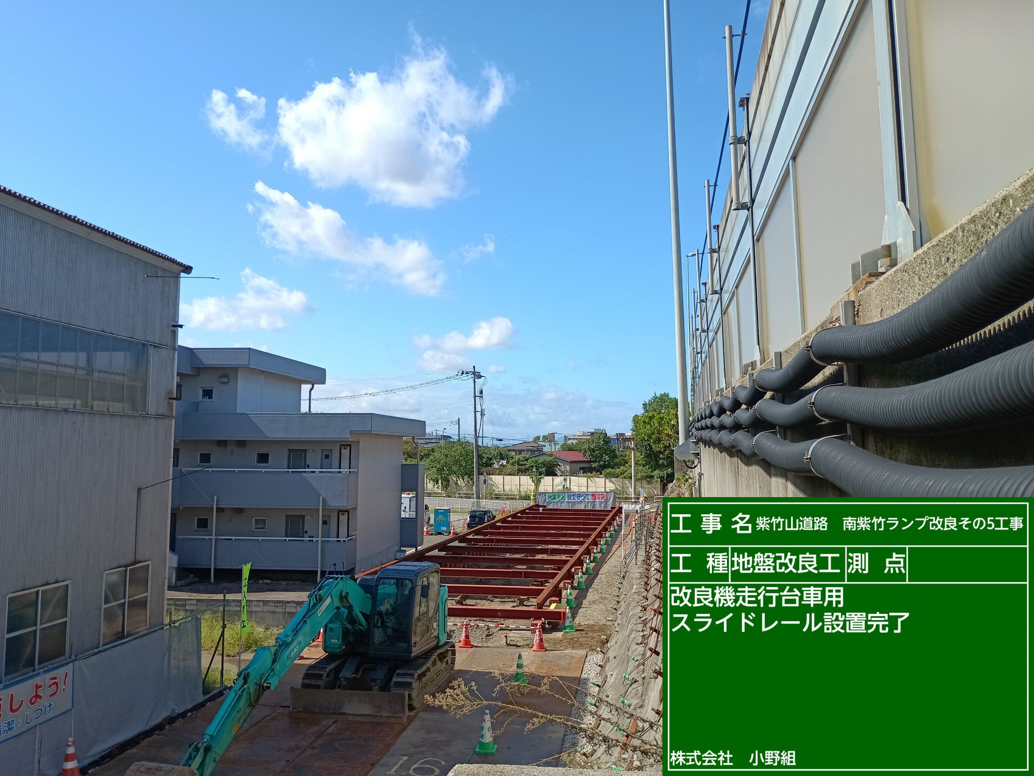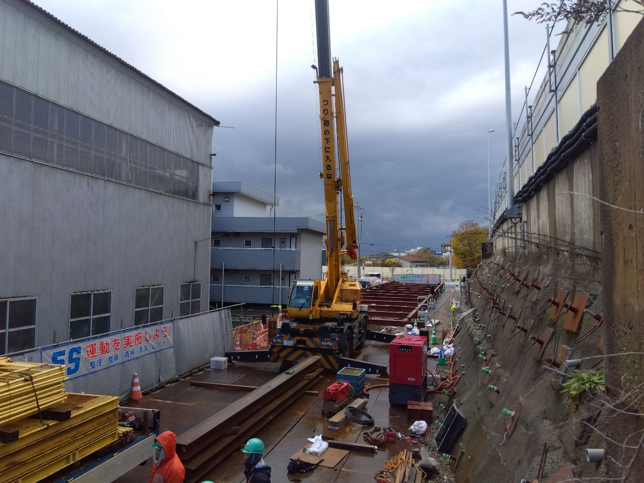 本日ご紹介するのは、先日ご紹介した鋼矢板(こうやいた)を圧入(もぐす作業)が完了したところに【レールを設置】する作業をご紹介します('◇')ゞ